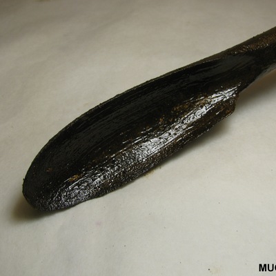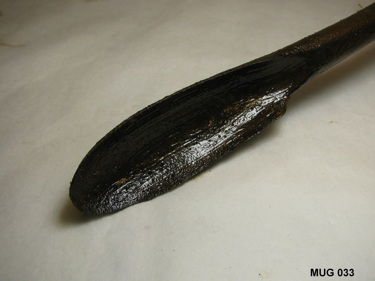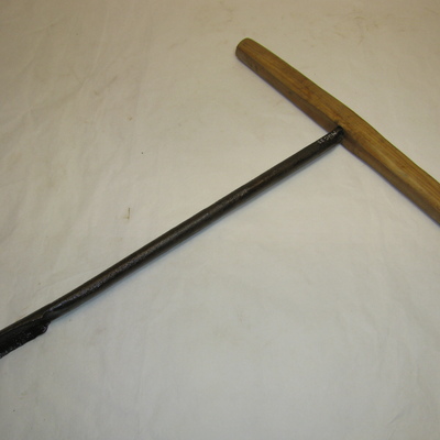 IJzeren stang nmet langgerekte lepelboor en rechthoekig houten handvat. Zwart, bruin.