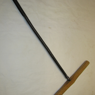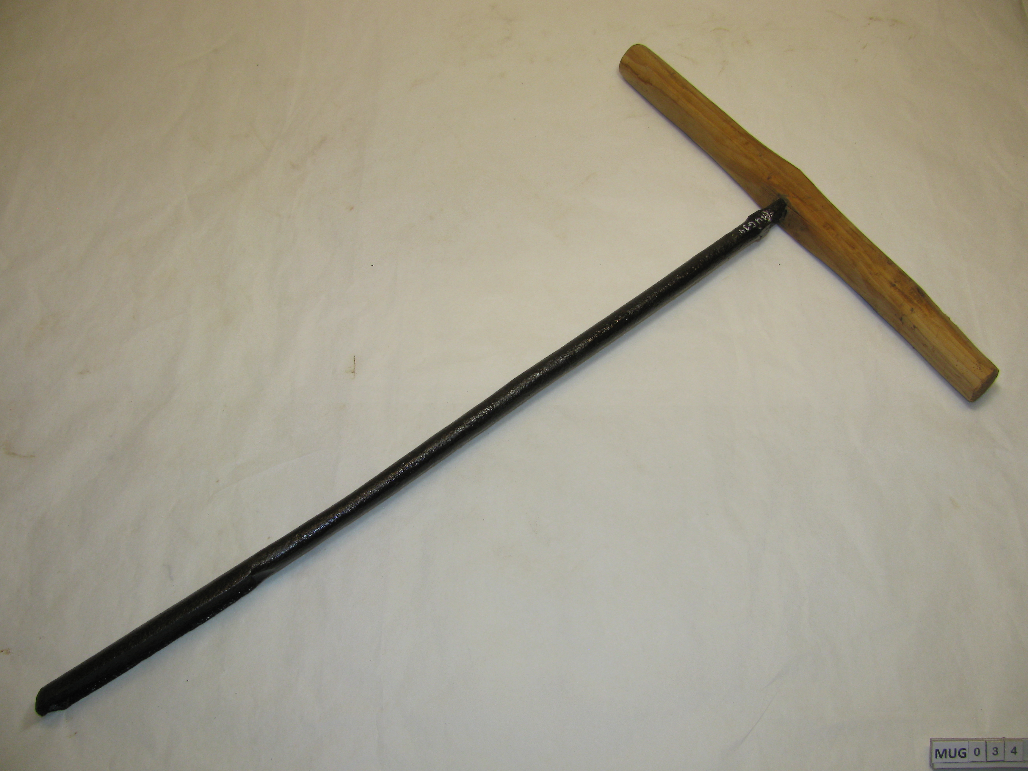 IJzeren ronde stang met langgerekte boor en houten handvat. Zwart, bruin.