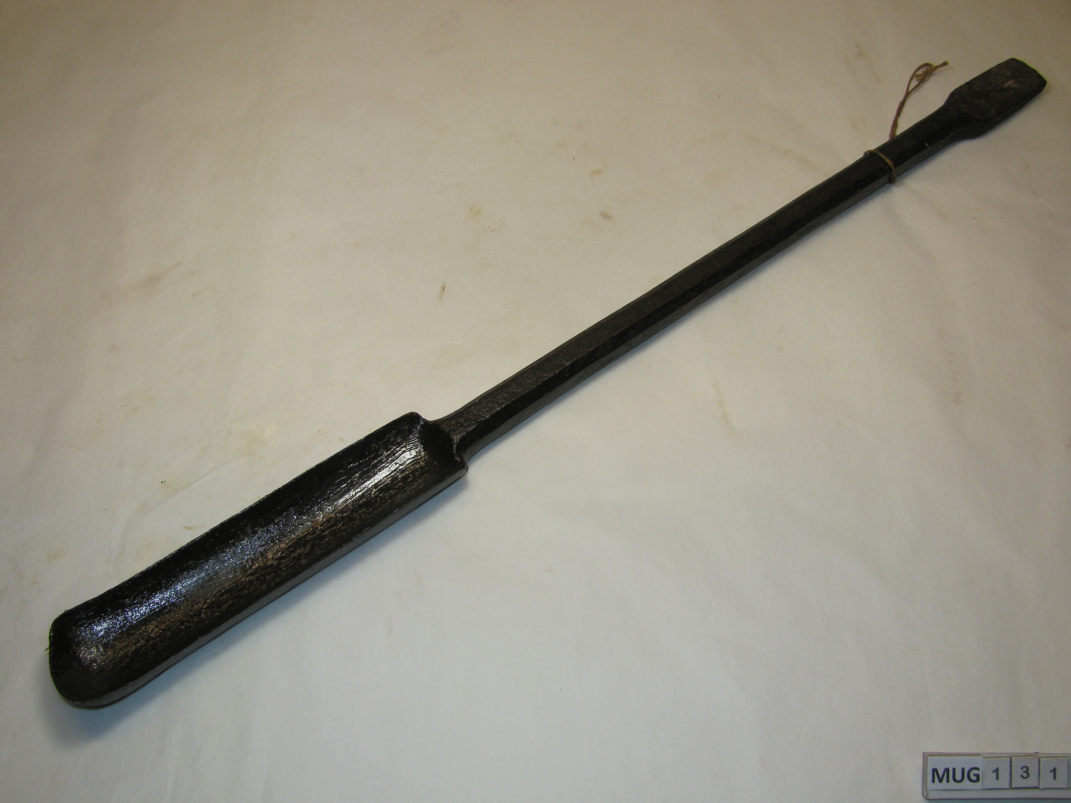 8-kantige steel met langgerekte grote boor. Andere uiteinde is breder en plat. Zwart.