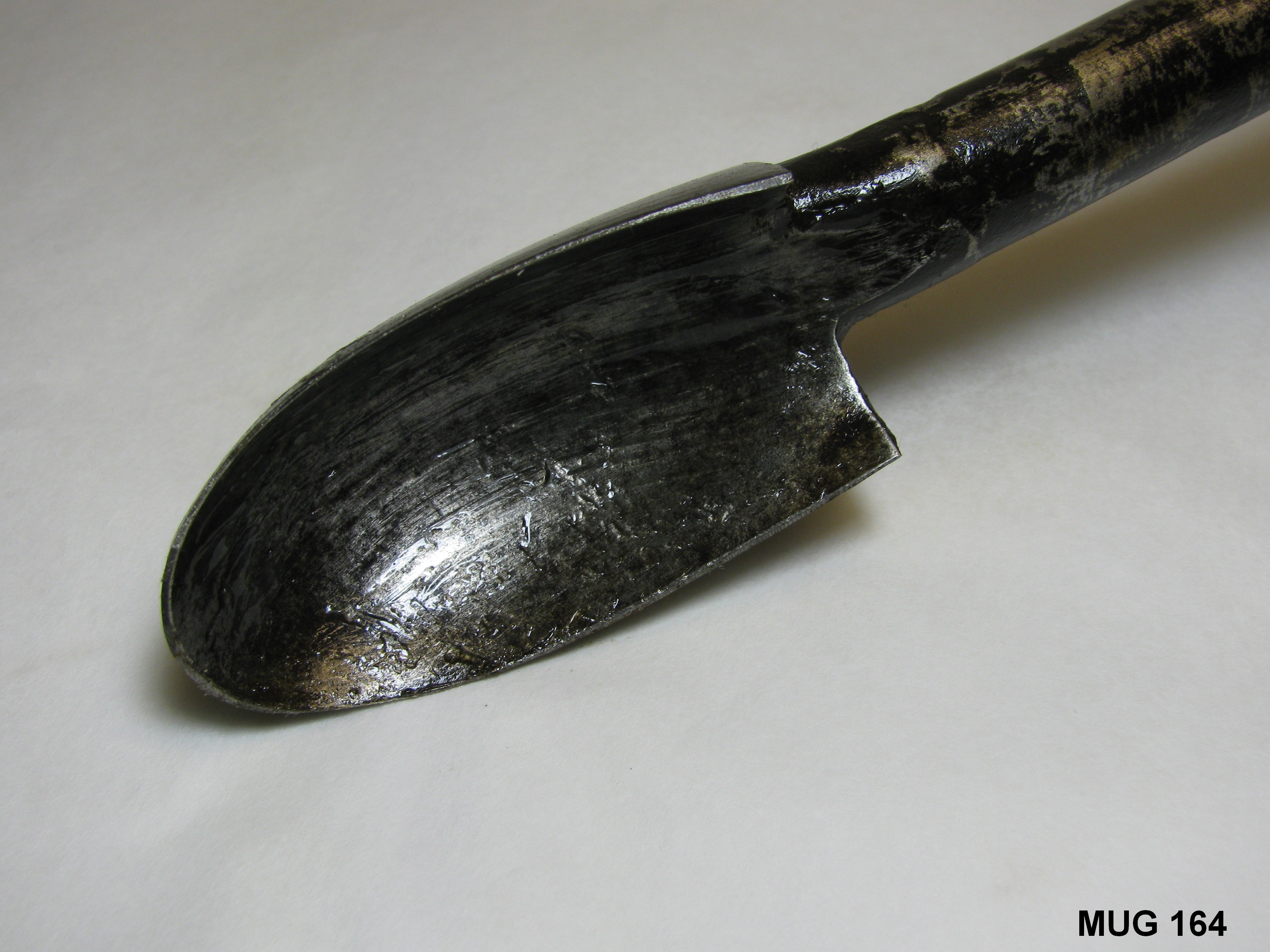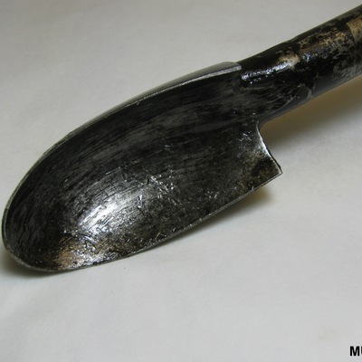 Ronde ijzeren stang met lepelboor en (nieuw) rond houten handvat. Op stang: 4.d.SCHMEINK ANHOLT. Zwart, blank.
