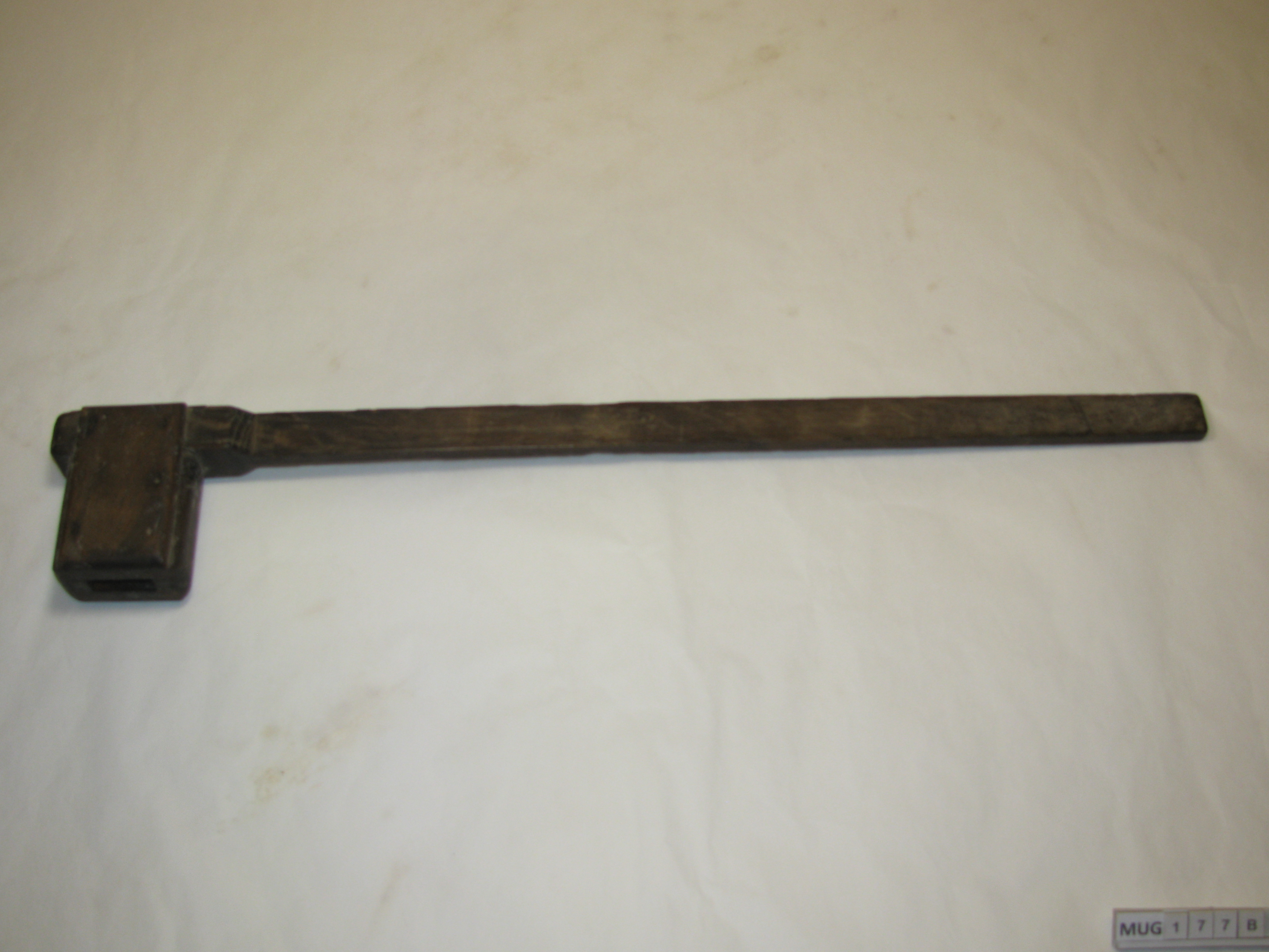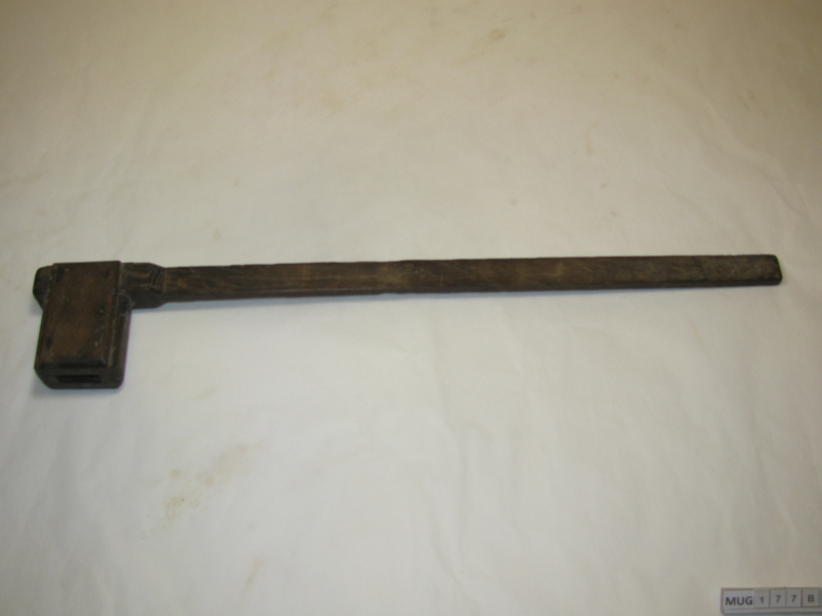 B. Lat met houten blok met opening waarin A gestoken kan worden.