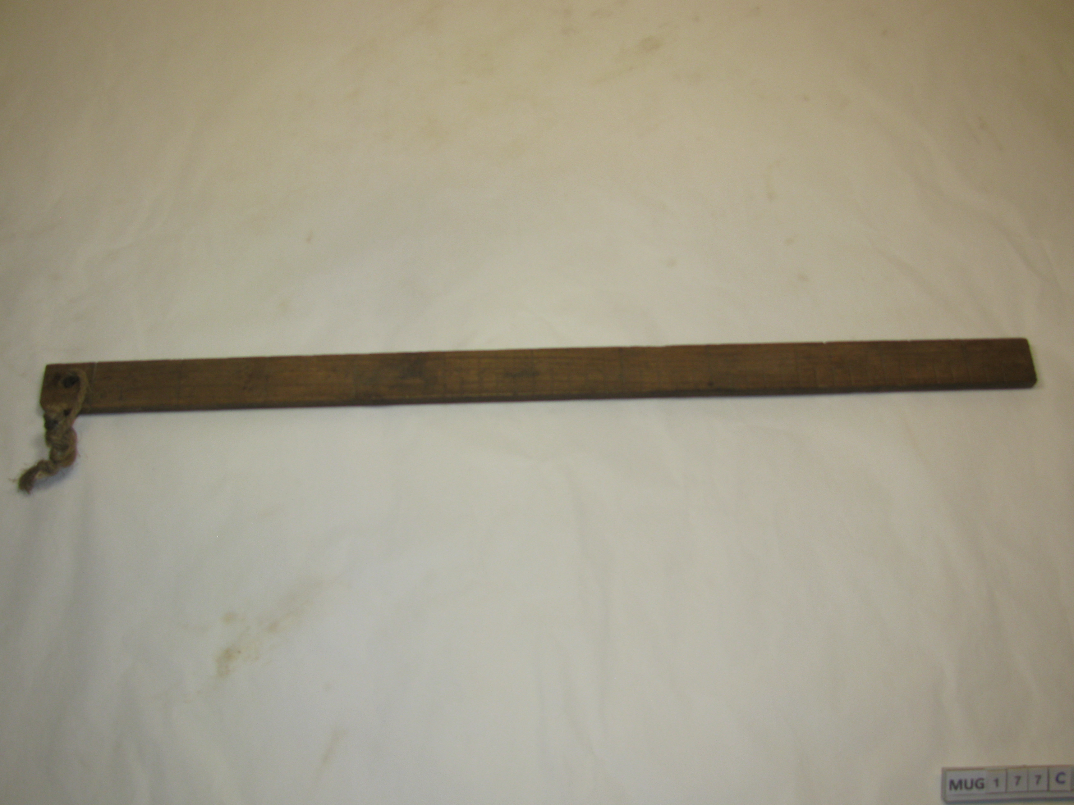 C. Lat met cm verdeling en gaatje met touwtje.