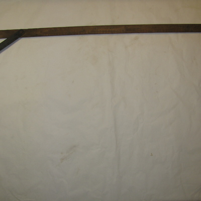 A. 2 draaibare latten met metalen beugel om de latten in een rechte hoek te zetten en schroef om deze dan aan te draaien. Verdeling in cm tot 90cm.