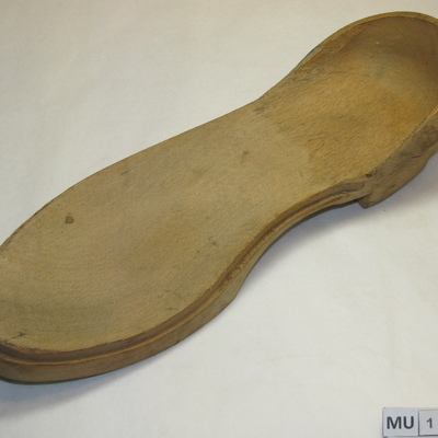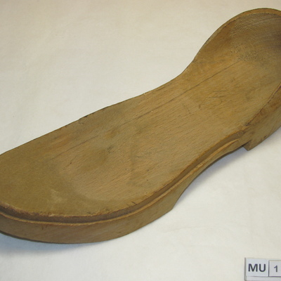 Gift van Gammel Rye Mølle og Traesko klompenmuseum, te Gammel Rye. Produkt gemaakt nadat klompenindustrie inzakte.