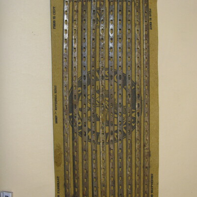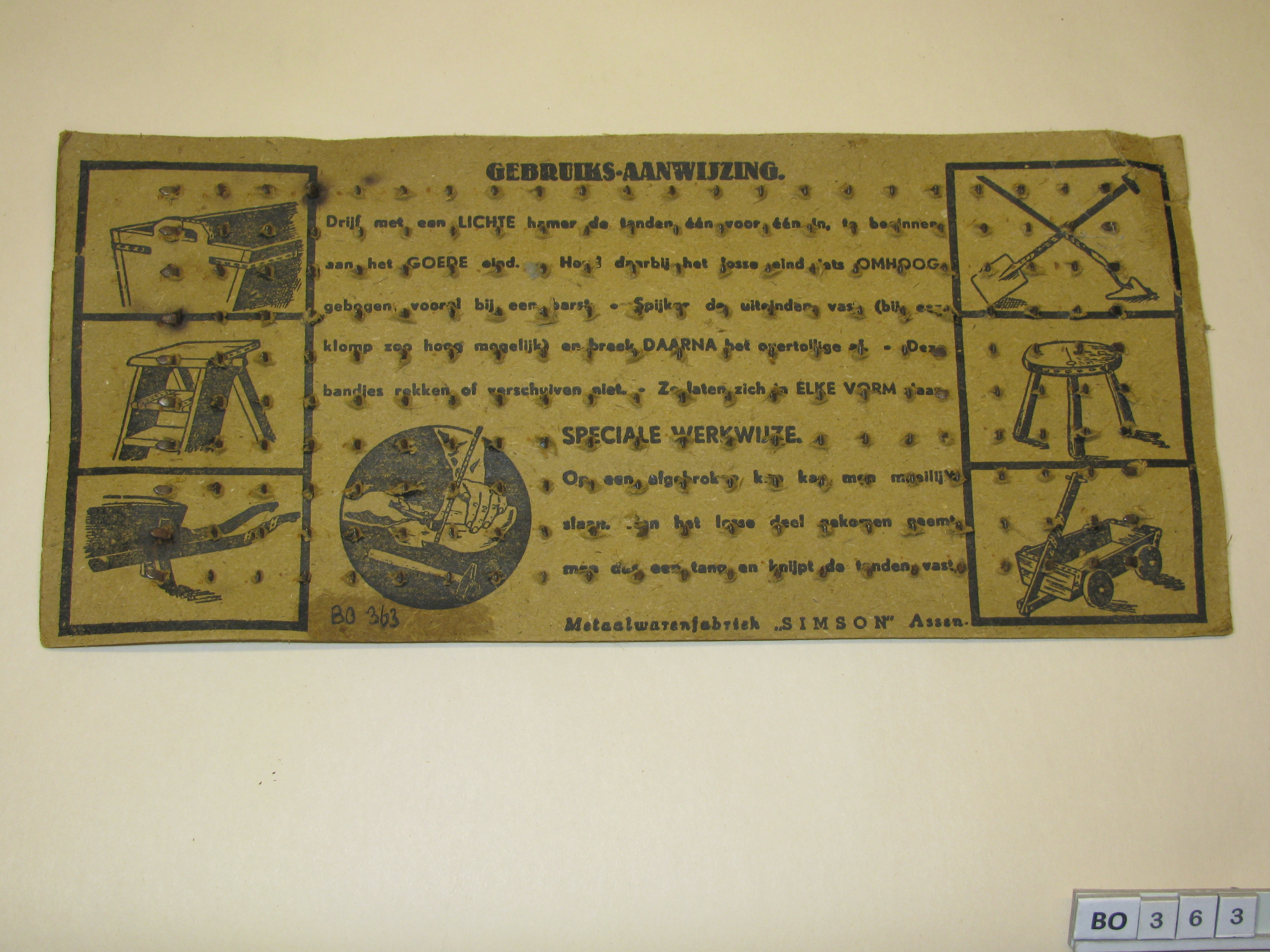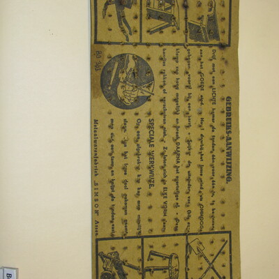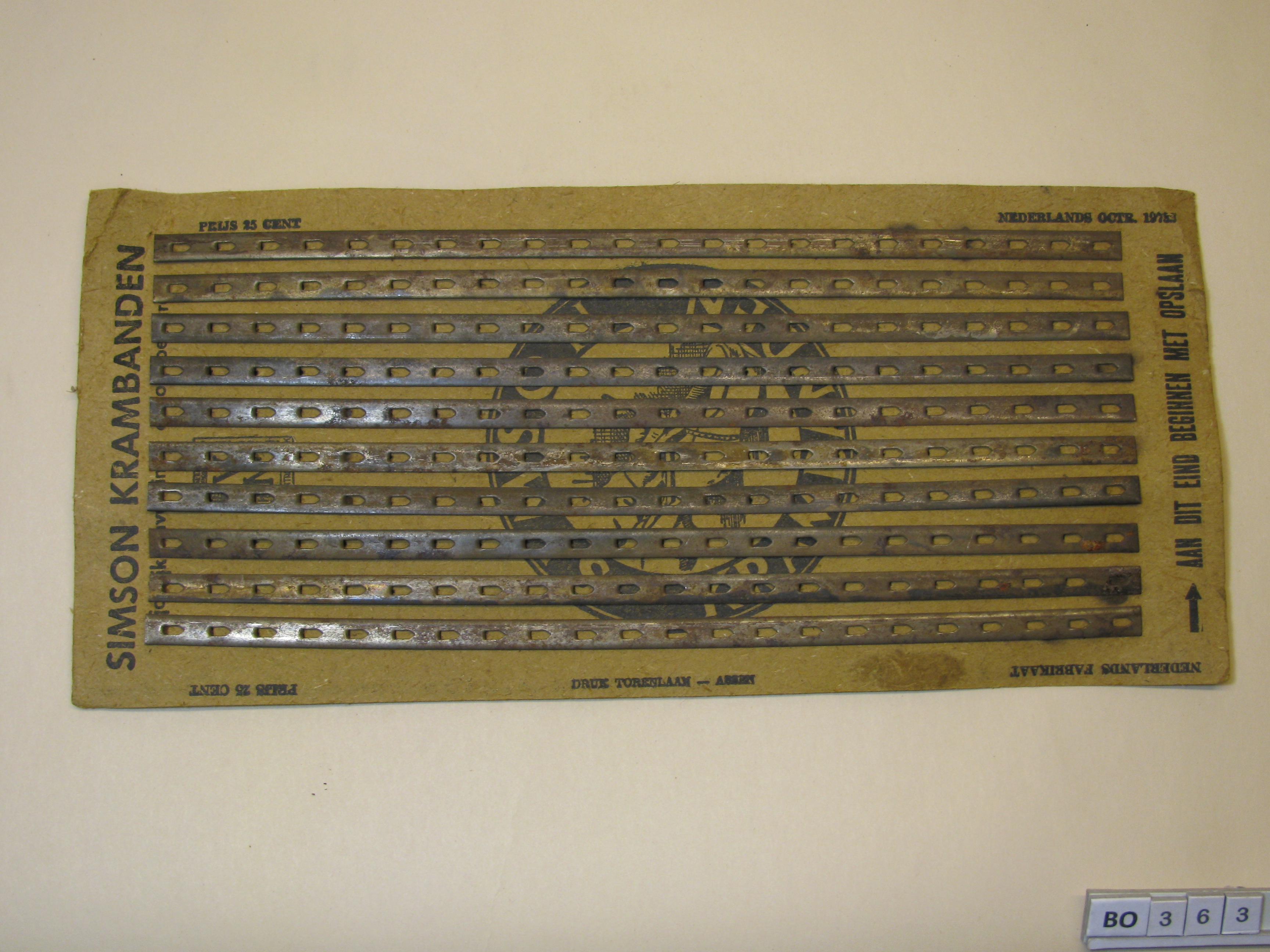 10 krambanden op rechthoekig stuk karton met opschrift.