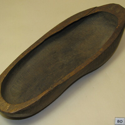 Klomp zonder bovenkant/kap om de dikte van het hout te demonstreren. Bruin.