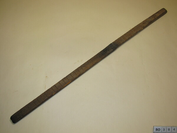 Maatstok, Nederland, Overijssel, Begin 20e eeuw Breed houten stokje met verdeling in centimeters. Bruin.