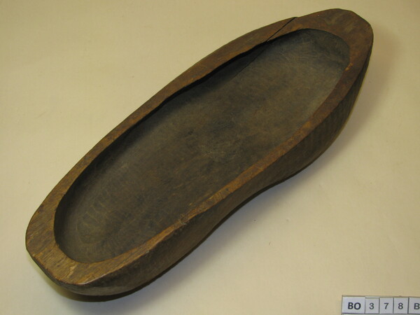 Modelklomp, Nederland, Midden 20e eeuw Klomp zonder bovenkant/kap om de dikte van het hout te demonstreren. Bruin.