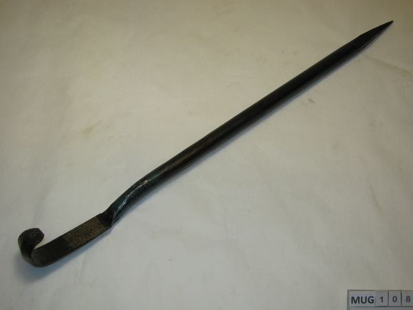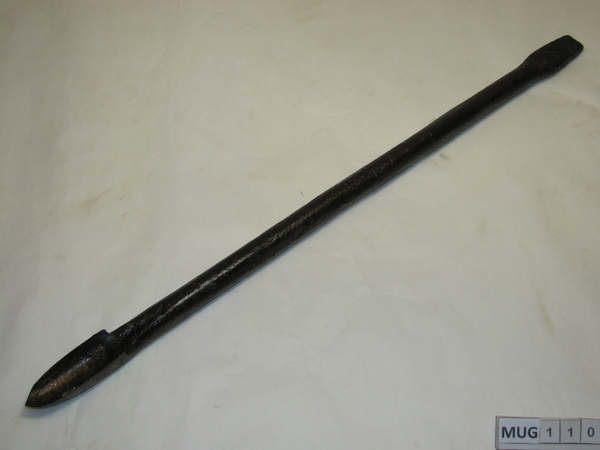 Teenmes, Nederland(?), Begin 20e eeuw Ronde ijzeren stang met plat mes. Steel eindigt vierkant en spits. Zwart.